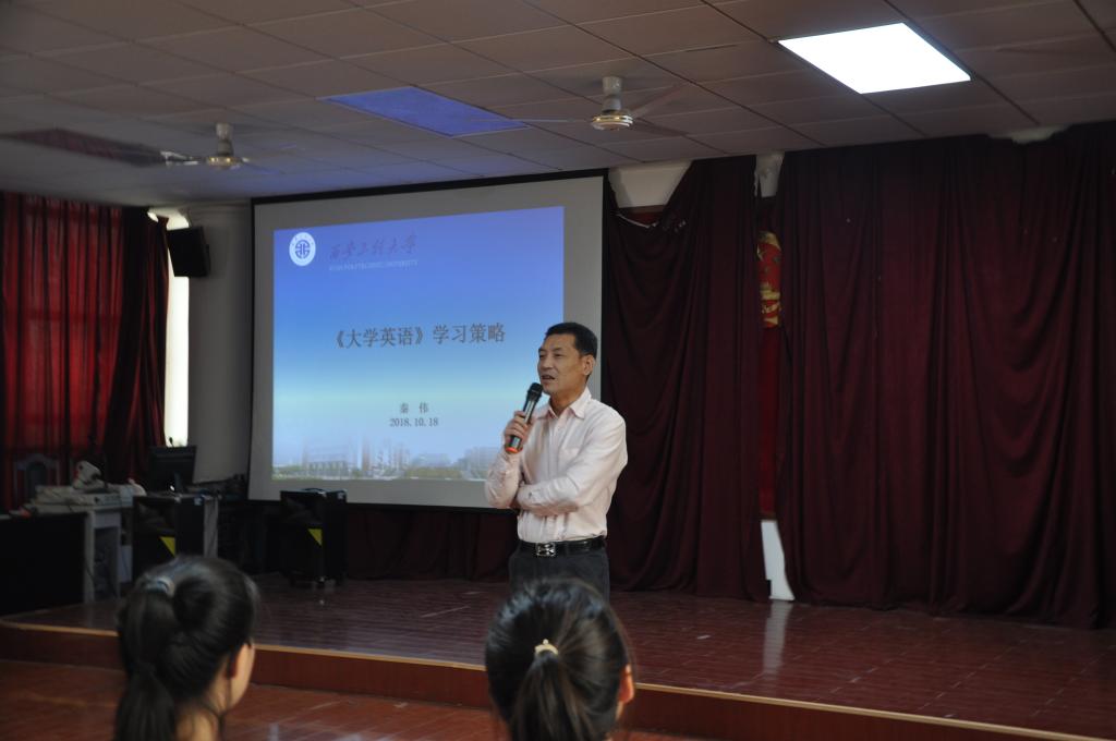 为了更好地让大一员工开启老员工活,提高学习质量。10月17号至10月18号下午williamhill官方网站分别在临潼校区D座教学楼282教室和人文楼模拟法庭举行为期两天的“入学教育——学籍管理宣讲会”和《大学英语学习策略》讲座。williamhill官方网站副经理秦伟和冯丽娟老师出席此次活动。