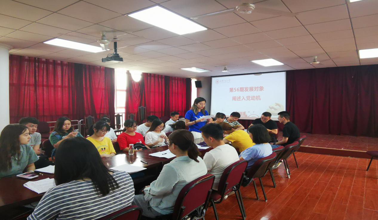 会议第一项,讨论接收第56期发展对象为中共预备党员。首先,由徐雅倩等10名发展对象向组织做自我介绍以及阐述自己的入党动机,表明自己的入党决心。然后由10名发展对象的入党介绍人向组织介绍他们的个人情况以及学习、工作中的表现。大会采取正式党员无记名投票方式,当场唱票,宣布10名发展对象全票通过,成为预备党员。