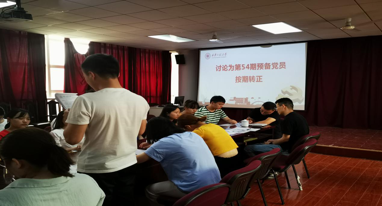 会议第二项,讨论第54期预备党员按期转正。首先由李晓妍等8名预备党员向组织提出转正申请,宣读自己的转正申请书。然后由正式党员对8名预备党员的转正发表转正意见。大会采取正式党员无记名投票方式,当场唱票,宣布8名预备党员全票通过,成为中共正式党员。