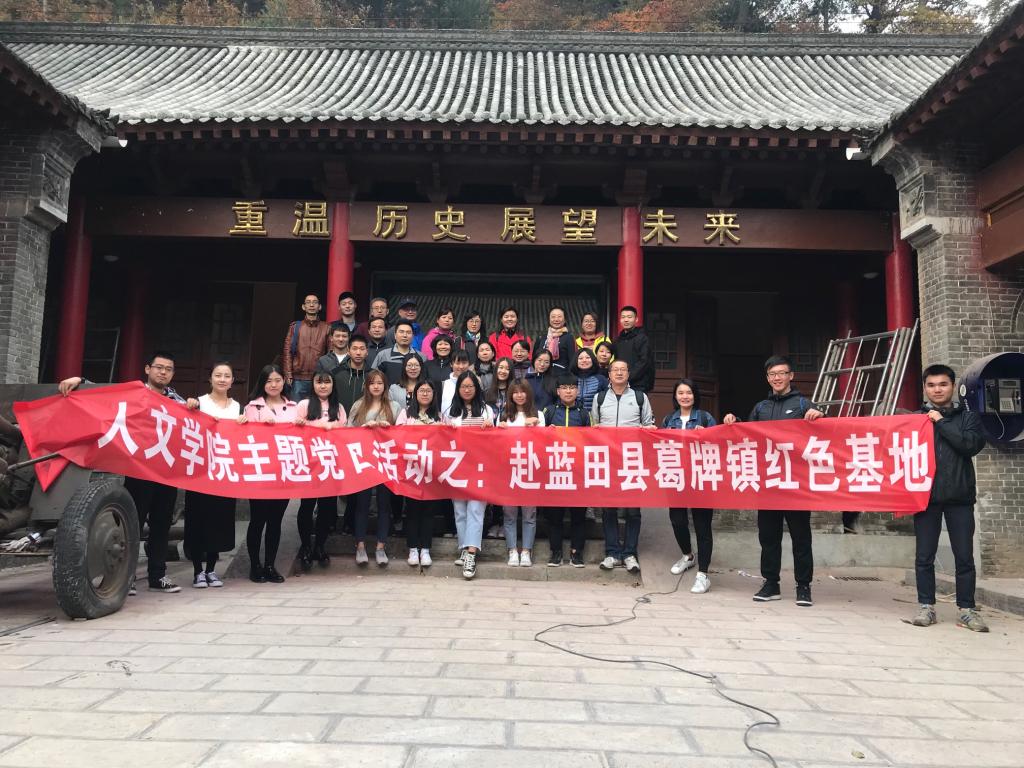 2017年10月28日,委组织教工党员、员工党员、入党积极分子和发展对象赴蓝田葛牌镇红色基地开展主题党日活动,实地感受红色文化,接受革命传统教育,推动“两学一做”学习教育常态化和制度化,加强党支部建设。