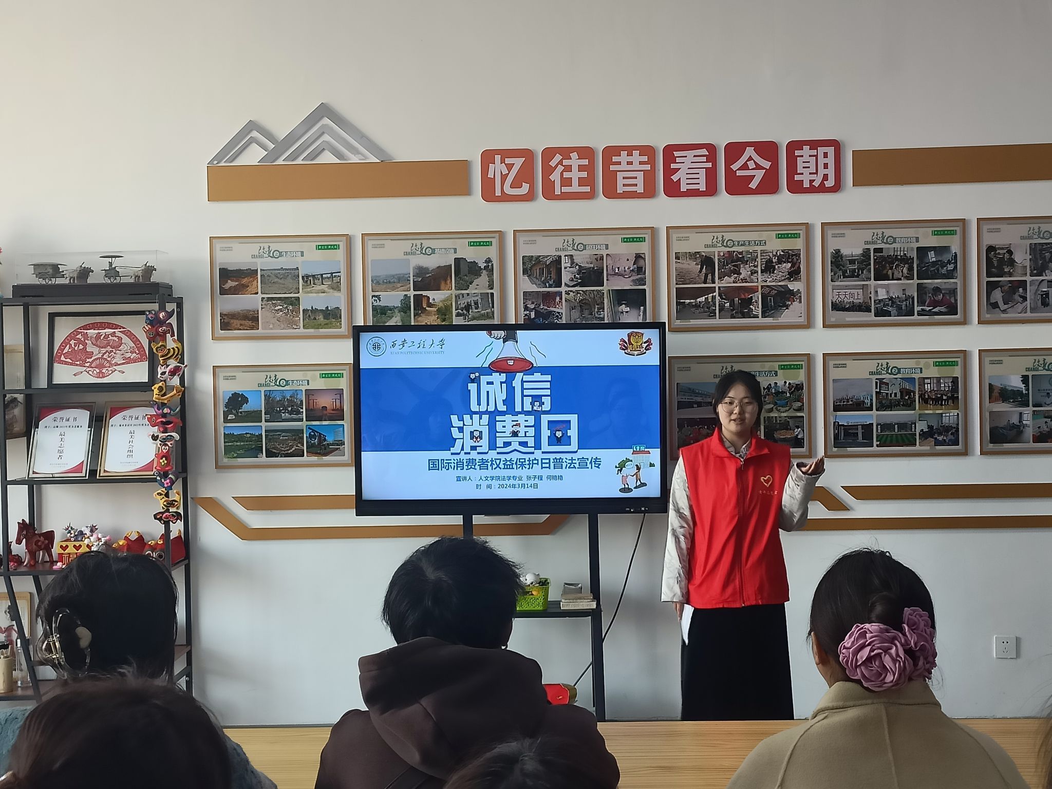 活动伊始,williamhill官方网站法学专业的张子程、何艳艳两名同学分别从什么是“3.15”、消费者权益维护典型案例分析、消费者权利及维权方法四个方面向社区居民进行普法宣讲。她们结合生动典型的消费者维权案例,对《中华人民共和国消费者权益保护法》的要点进行了详细解读。随后,宣讲团成员们向居民们介绍了常见的消费侵权行为,明确了消费者享有的权利,鼓励社区居民在产生消费争议时,要勇于通过法律途径解决纠纷,积极捍卫自己的消费权益。同时,宣讲团成员们向社区居民发放了消费者权益保护相关内容的宣传单。