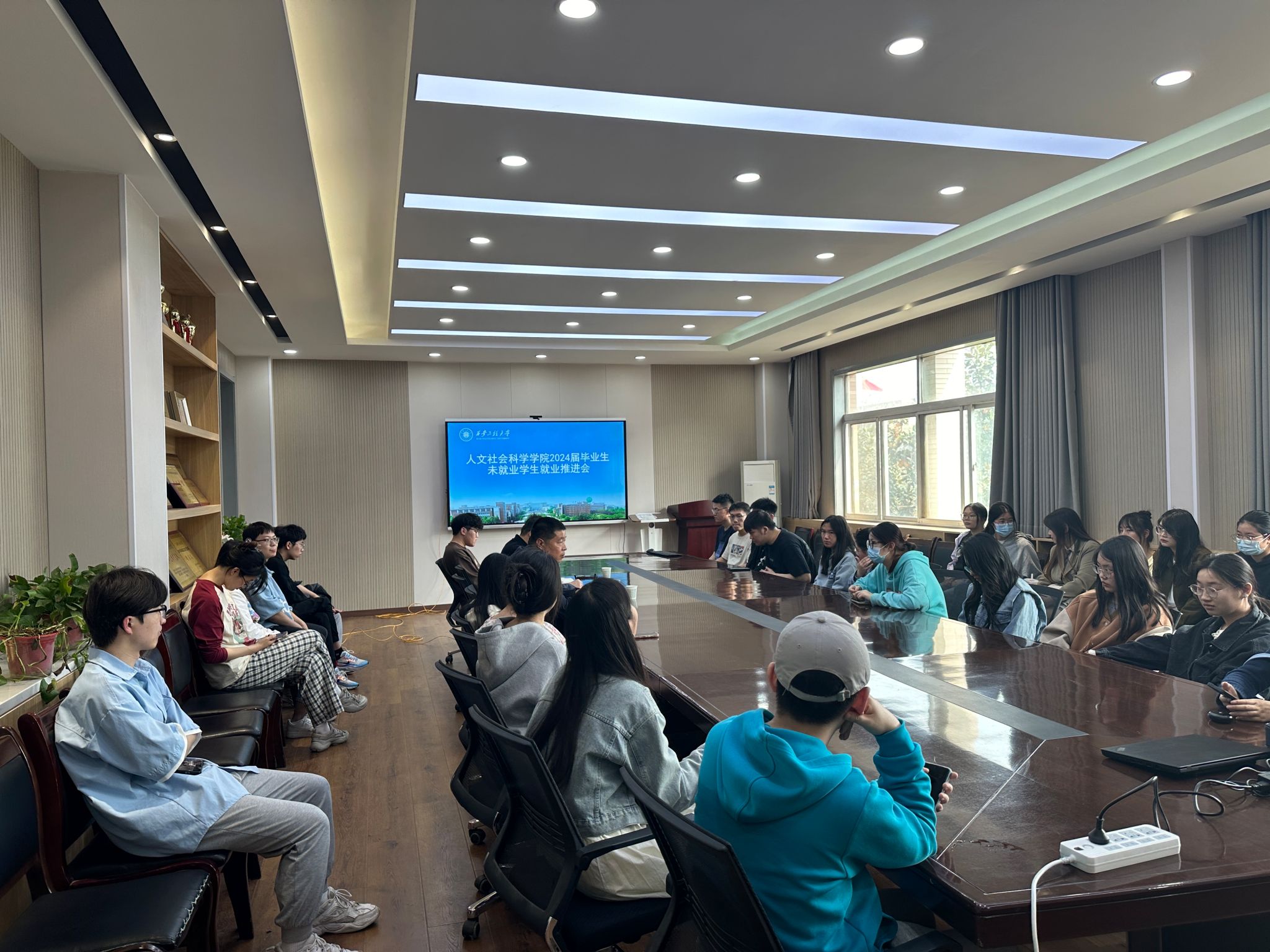 4月8日下午,williamhill官方网站在人文楼326会议室召开2024届未就业员工就业推进座谈会。公司人才招聘工作处副处长(主持工作)付刚、公司党委副书记赵立涛、辅导员王德利以及40余名未就业员工参加会议。会议由赵立涛主持。