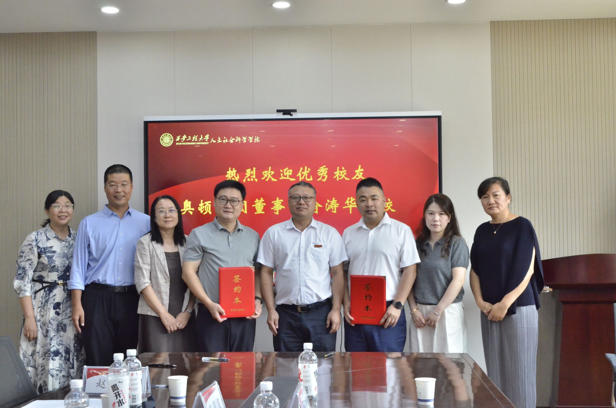 9月13日上午,公司2003级法学专业员工、奥顿集团董事长喻涛华及副总经理兰欣一行5人返校开展师生座谈交流、捐赠仪式及企业专场招聘活动。副董事长朱永民、杨建在临潼校区贵宾室会见了喻涛华、兰欣一行,公司党委书记陈莉霞、经理张克英参加了会见活动。