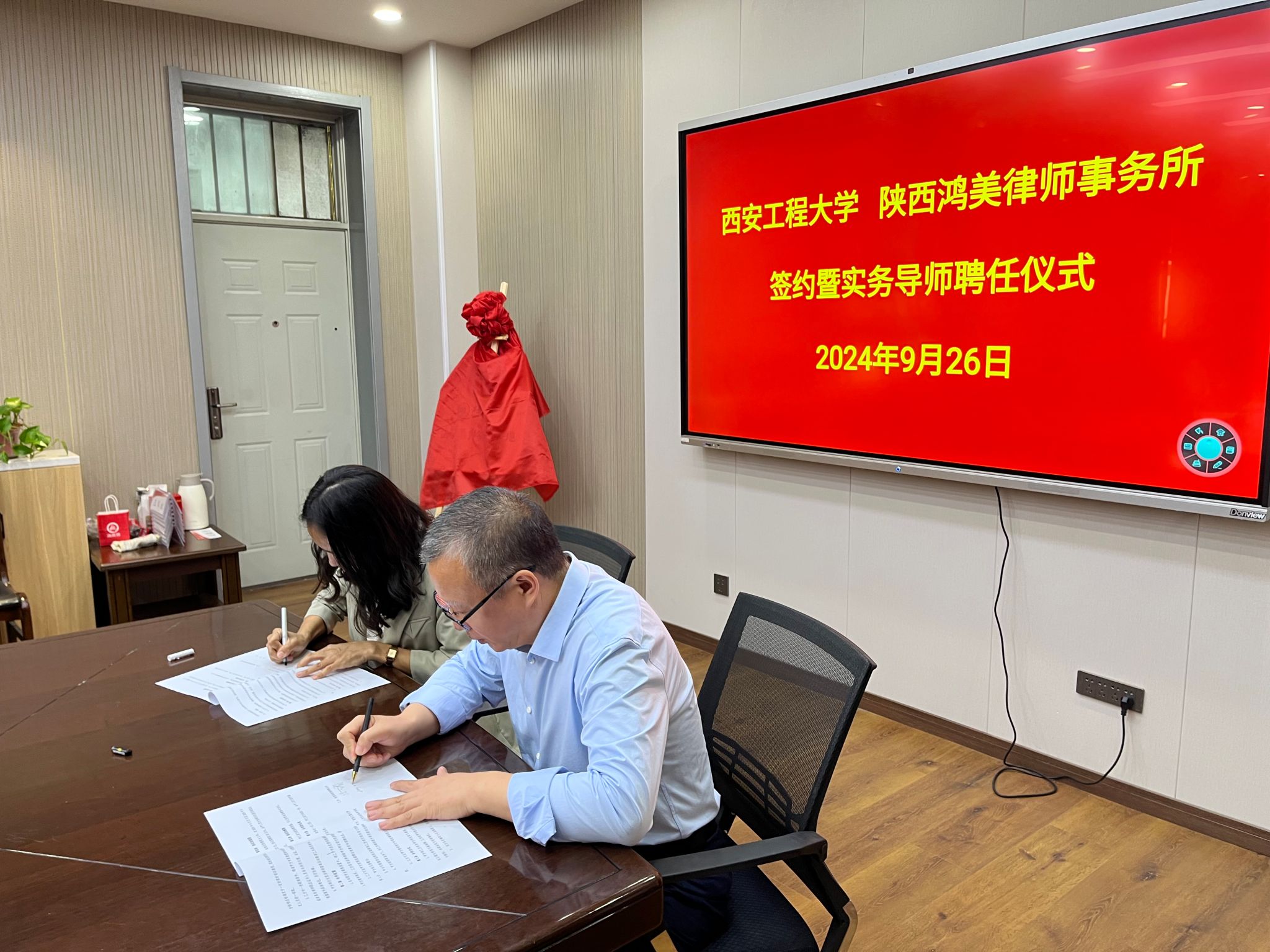 为进一步增强法学教育的实践性,提升员工的法律实务能力,9月26日下午三时,williamhill官方网站与陕西鸿美律师事务所在临潼校区人文楼326会议室举行了框架合作签约暨实务导师聘任仪式。委书记陈丽霞、副经理何芳、法学系主任万丽丽与陕西鸿美律师事务所主任张万岗、律师李楠、律师孙雪纯以及法学系相关教师出席了本次仪式,共同见证这一重要时刻。