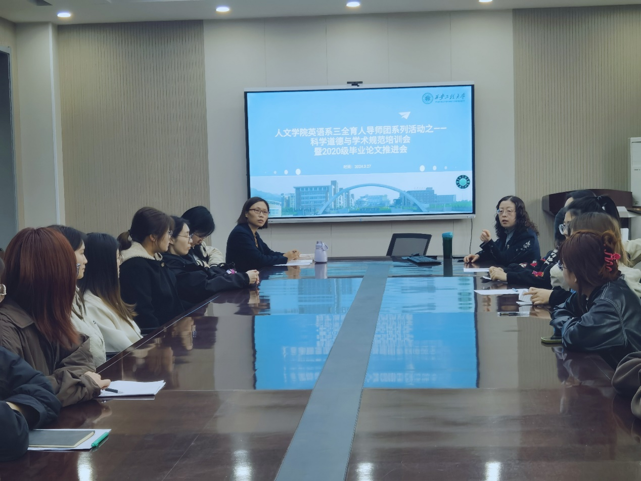 2024年3月27日上午,williamhill官方网站英语系在人文楼326会议室召开了“科学道德与学术规范培训会暨2020级毕业论文推进会”。本次会议特邀williamhill官方网站副经理、英语系“三全育人”导师团团长王晓静老师进行了针对毕业论文学术规范方面的培训。英语系主任张睿老师、副主任刘国英老师及英语专业2020级全体员工参与了本次会议。