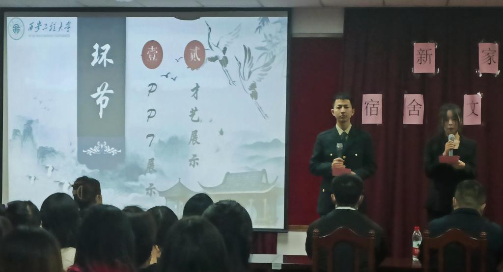 经过前期多次卫生检查、宿舍装饰等环节的初赛评选,共有六个宿舍进入决赛。比赛过程中,六位宿舍代表依次通过PPT介绍了宿舍成员的构成,展示了独具创意的宿舍装饰及丰富多样的宿舍文化;同时,进行了以宿舍为单位的才艺表演,展示了宿舍成员团结协作、多才多艺、积极向上的精神风貌,大家精彩的表演也使活动现场充满了欢声笑语。活动最后,五位评委本着“公平、公正、公开”的原则,根据宿舍装扮、宿舍文化、成员风貌以及才艺展示等方面进行了评分。最终,6#A208宿舍荣获一等奖,6#A209、6#A210宿舍荣获二等奖,6#A203、9#B409、6#A213宿舍荣获三等奖。