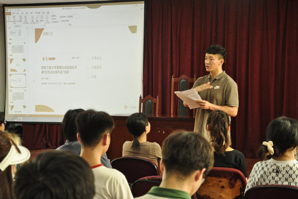 随后,往届社会实践优秀代表——2019级法学专业员工丁一博为大家带来了实践分享。他深入浅出地分享了实践团队的前期准备、实践过程及后期总结的经验,特别强调了选题的重要性,对团队成员的组成、实践项目的设计、宣传、分工等方面提出了宝贵建议,对同学们进行了精准的指导。