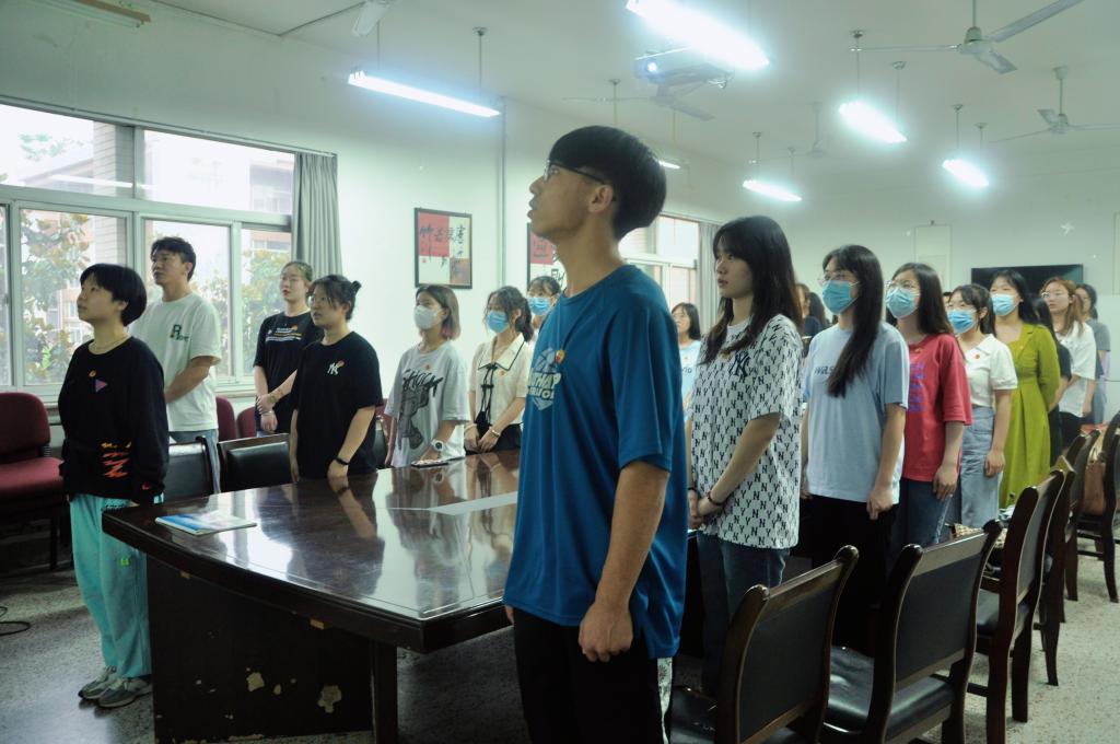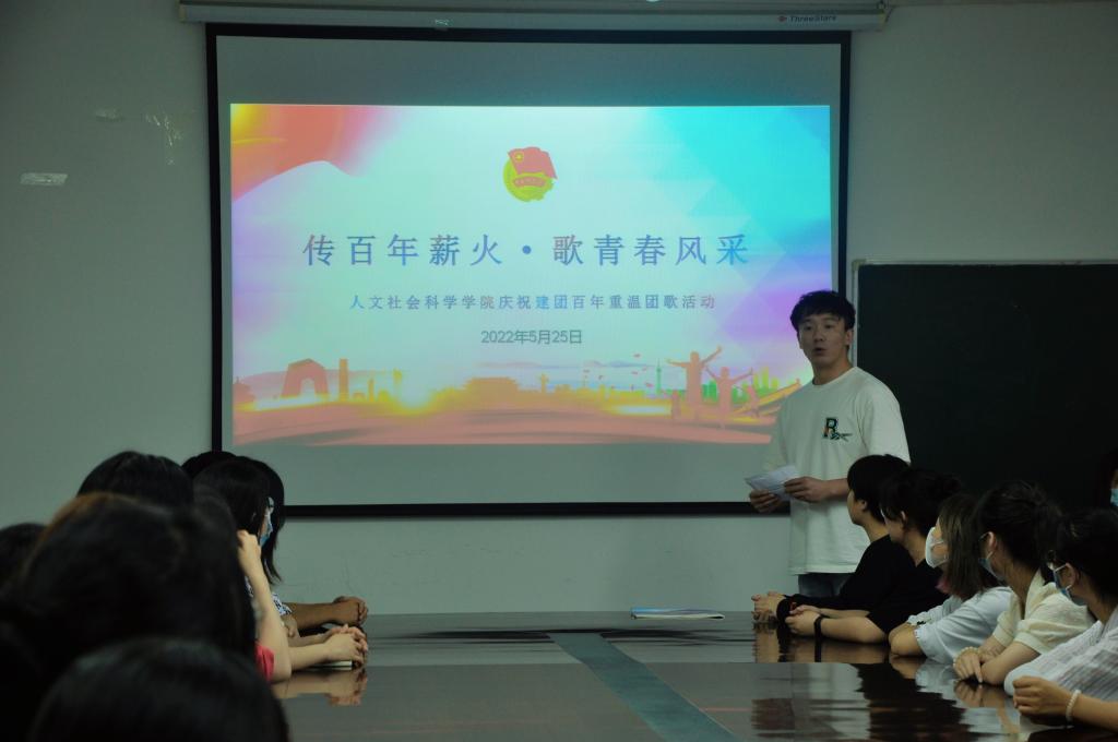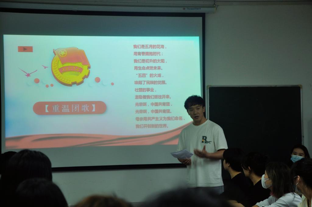活动伊始,团总支书记刘杨扬带领大家学习了团歌的创作历程,并结合创作背景解读歌词含义。随后,全体人员起立,在刘杨扬老师的带领下唱响团歌,团歌振奋人心,像一首英雄的赞美诗,激励着每一位青年的奋进精神,彰显着共青团员蓬勃的朝气。