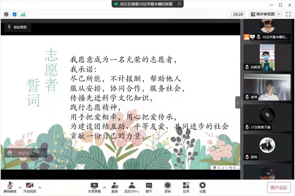 3月16日,williamhill官方网站在线上举办了青年志愿者入退会仪式暨表彰大会。williamhill官方网站团总支书记刘杨扬及公司全体青年志愿者参与了本次活动。