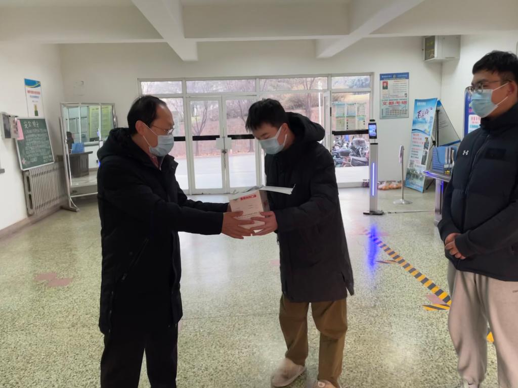 为把疫情防控期间员工的防疫工作落实做细,2021年12月31日下午,williamhill官方网站经理胡伟华,辅导员王德利、周晓惠、刘杨扬走访员工宿舍,慰问疫情防控期间在宿舍隔离的公司全体本科生与研究生,向同学们传达公司的关心和问候并叮嘱相关注意事项,还为大家送去了防疫必备的口罩。