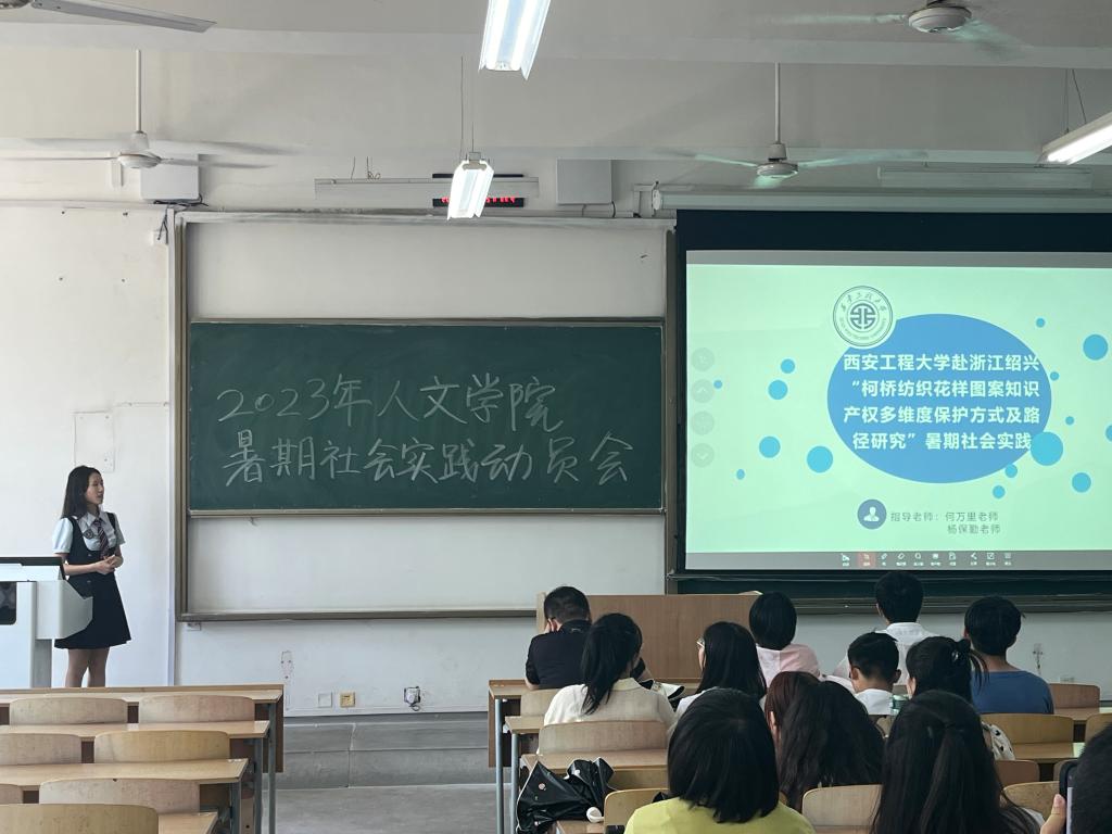 公司社会实践优秀代表21级法律硕士王晓莉为大家带来了实践分享。她依托williamhill官方网站赴浙江绍兴“柯桥纺织花样图案知识产权多维度保护方式及路经研究”暑期社会实践项目,全方位立体的讲解了团队实践的前期准备,实践要求,实践意义等。她向同学们分享了参加心得,号召同学们进一步提升自身适应社会、服务社会的能力,积极投身到暑期社会实践中去。