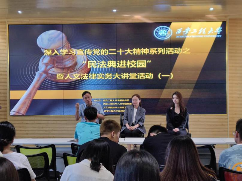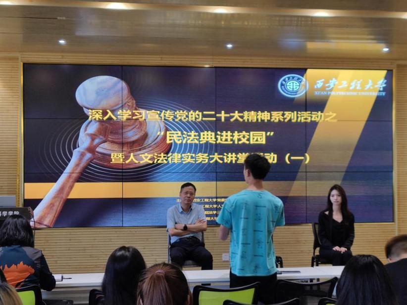 为深入学习宣传贯彻党的二十大精神,落实省普法办、省司法厅《关于转发2023年美好生活·民法典相伴主题宣传方案》通知要求,加强民法典普法工作,提高师生法律意识,营造文明、平安、和谐的校园育人环境,5月24日,由党委宣传部和委联合举办的“民法典进校园”系列活动在临潼校区举行。