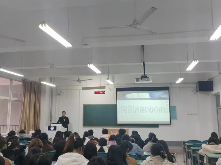 薄艳丽老师向同学们做了题为《我的大学我做主》的讲座。她从理想的老员工活vs实际的老员工活、大学究竟该怎么过、大学必做的20件事、未来规划、英语专业毕业生可以在图书编辑行业做什么等方面,以自身经验深刻分析当下以及未来同学们面临问题,为同学们做好四年规划和未来就业规划提供了指引。薄艳丽老师以个人的经历,着重给同学们细致讲解了大学四年的规划,并告诫同学们在大学要有明确的目标,以自身行动为将来就业升学打下良好基础。最后,薄艳丽老师为同学们讲解了英语专业毕业生在文化出版方面的就业趋势和就业环境,让同学们更加了解英语专业毕业生在从事文化出版工作中的角色以及工作要求。