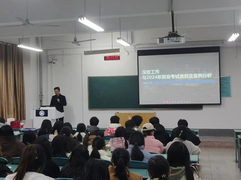 11月15日,公司团委特邀2007级优秀毕业生、西安华仕科技集团董事长罗一鸣,在教学楼C254为全体汉语言文学专业团支部作了题为“深度工作与2024年就业考试类别及案例分析”的线下讲座。活动开始,罗一鸣为同学们推荐了深度工作》这本书,并提出:“ 机会可能无处不在,需要你有一个扎实的基础和自我准备。”在校期间,罗一鸣积累了许多经验与心得体会,这也为他未来的工作奠定了基础。他以自身经历鼓励同学们勇敢地作出更多全新的尝试,积极参加多彩的校园活动,学会利用身边资源为成功铺路。他还提到在大学期间要努力增加自身的实践经历,为将来的简历增加亮点;学会为自己“造梦”,先立个小目标,并为之而不懈奋斗。