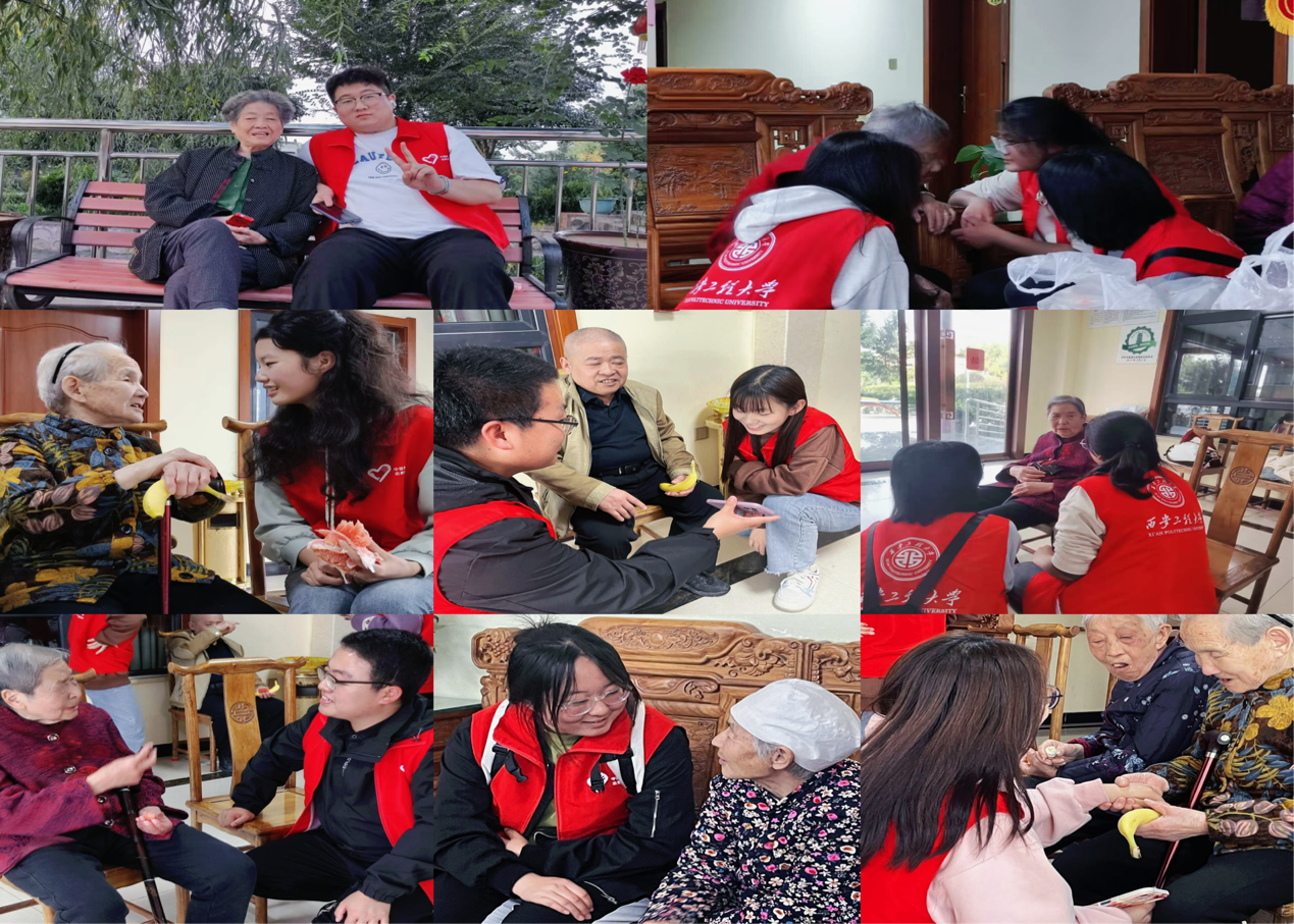 到达敬老院后,志愿服务正式开展。志愿者们在工作人员的指导协助下迅速完成了现场的布置,为老人们带来了丰富多彩的文艺表演,志愿者们精心准备了歌曲、朗诵、舞蹈等节目,全程与爷爷奶奶们互动,老人们脸上都洋溢着幸福的笑容。节目表演结束后,志愿者们与老人们聊天畅谈,在了解关心爷爷奶奶的身体与生活状况外,志愿者们还向老人们宣讲了电信诈骗及如何预防等的安全知识,法学专业的志愿者结合自身专业知识与现实案例,生动具体地为爷爷奶奶们普及了相关法律知识。活动中,老人们与志愿者们敞开心扉,大家如同家人般亲密围坐,亲切交流,欢声笑语。