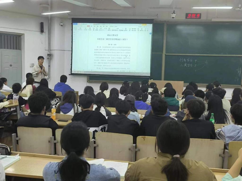 随后,刘杨扬对williamhill官方网站“第二课堂”相关规定进行了宣讲。他首先向同学们强调第二课堂的重要性,是大学期间进行德智体美劳全面发展的要求,事关同学们能否顺利毕业。第二课堂与第一课堂相结合,共同促进同学向高素质应用型人才方向发展。同学们纷纷表示将珍惜大学时光,努力学习,积极参与各类团学组织和社团活动,不断提升自我综合素质、实践、创新创业等能力。